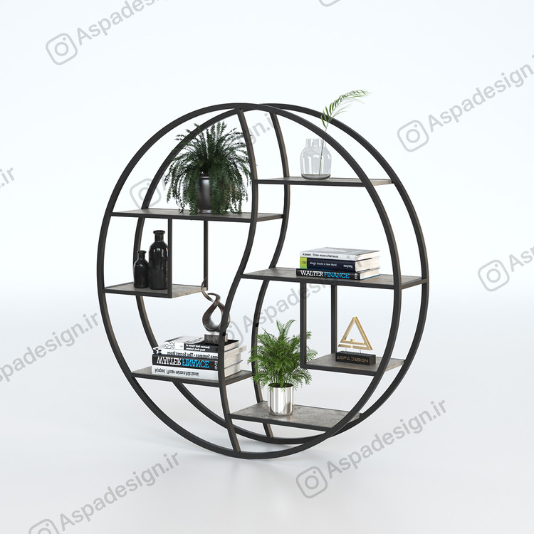 شلف دیواری آسپادیزاین مدل D-105 با فرم دایره ای آن قطر 85 سانتی متر و عمق 18 سانتی متر دارد که با پروفیل صنعتی و رنگ الکترواستاتیک کوره ای ساخته شده است.