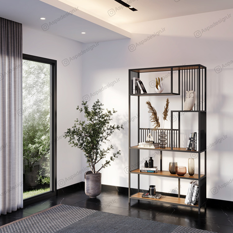 کتابخانه مدل D-115 دارای ابعاد 30*100 با ارتفاع 190سانتی متر میباشد که با پروفیل صنعتی و رنگ الکترواستاتیک مشکی ساخته شده است.