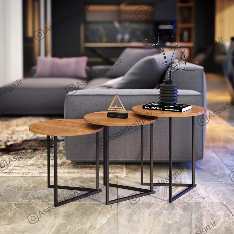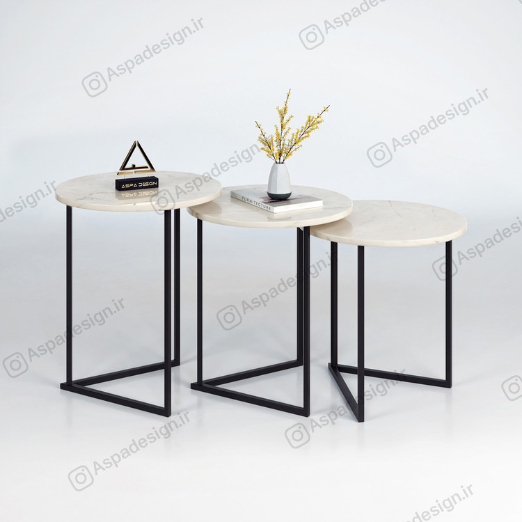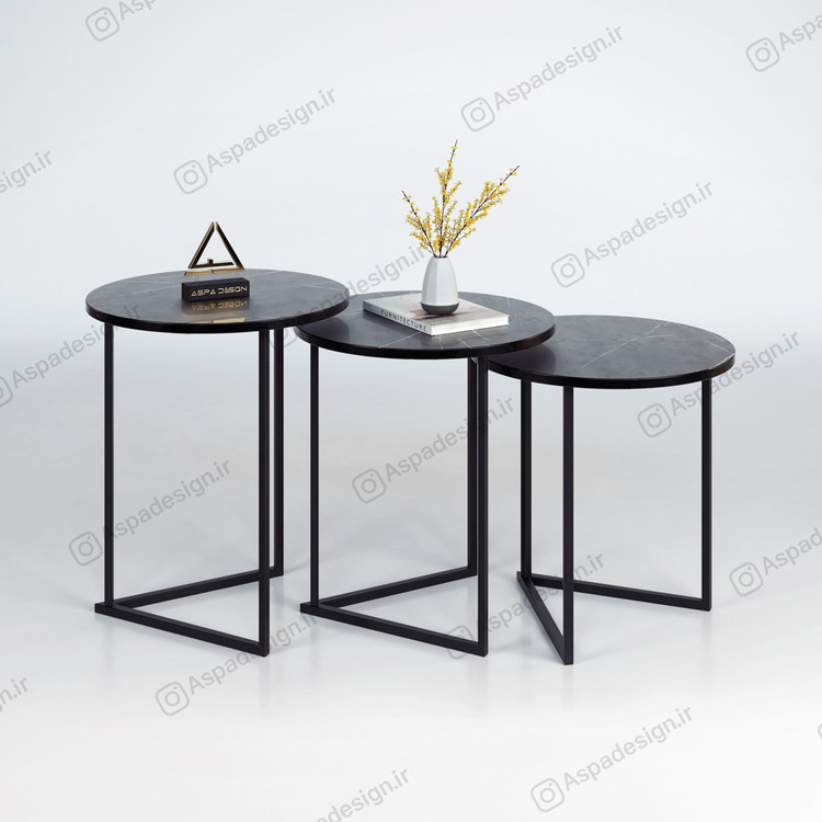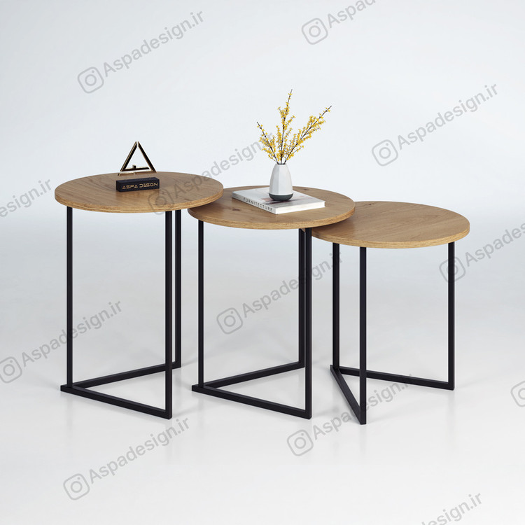 مدل معرفی شده مجموعه ای سه عددی که صفحه های آن با قطر 45 سانتی متر از جنس ام دی اف می باشد. رنگ پایه ها مشکی از نوع کوره ای الکترواستاتیک هست که مقاومت خوبی در برابر خش و رطوبت دارد.